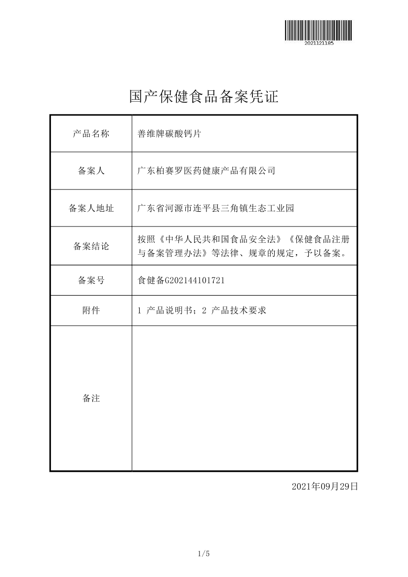 善维牌碳酸钙片批文